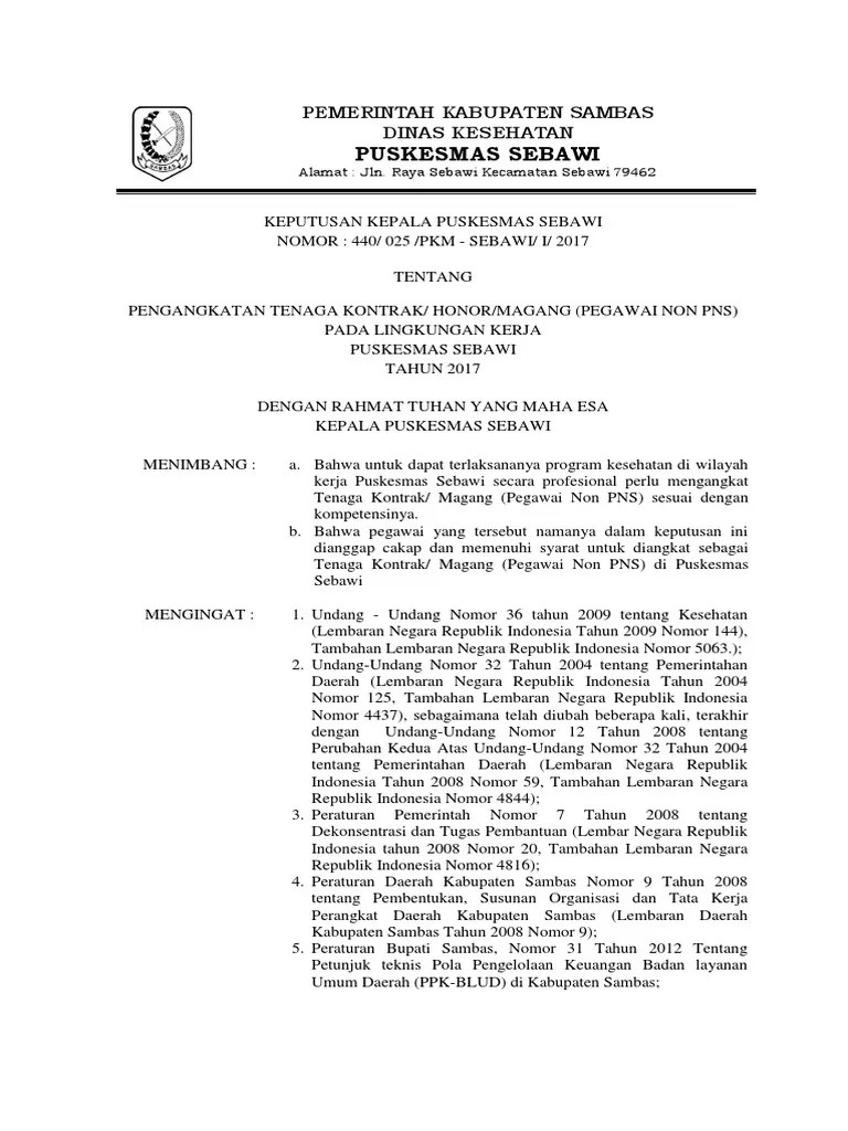 Contoh Sk Pengangkatan Guru Kontrak Bupati / Top Pdf Contoh Sk Pengangkatan Tenaga Honorer Sukwan 123dok Com - Kabupaten sampang bkpsdm kab sampang contoh sk tenaga kontrak .